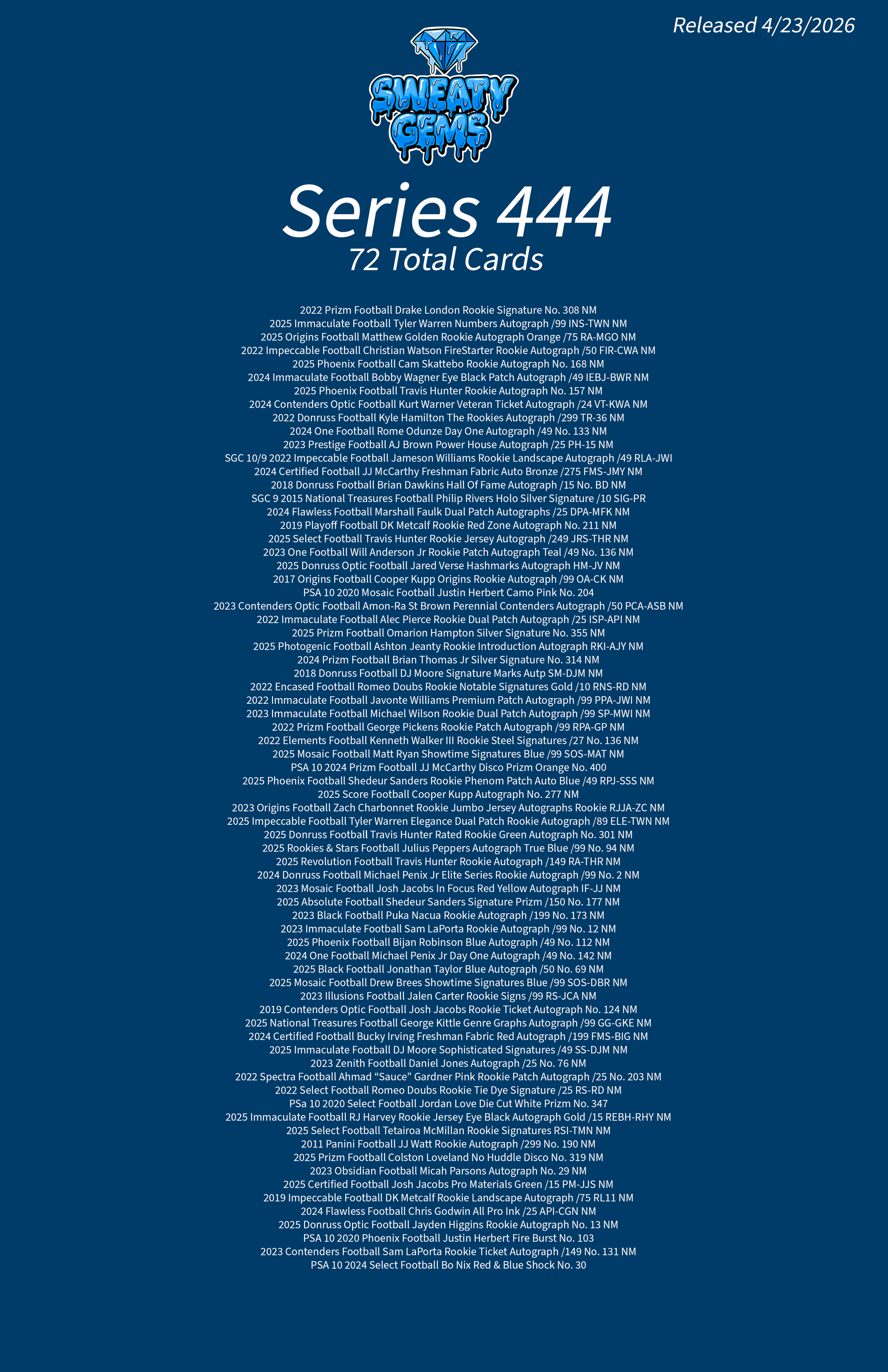 Classic Series 444 Checklist Apr 23 Written By Sweaty Gems LLC . Release date: 04/23/2026. The full product checklist can be found below. Sweaty Gems LLC .