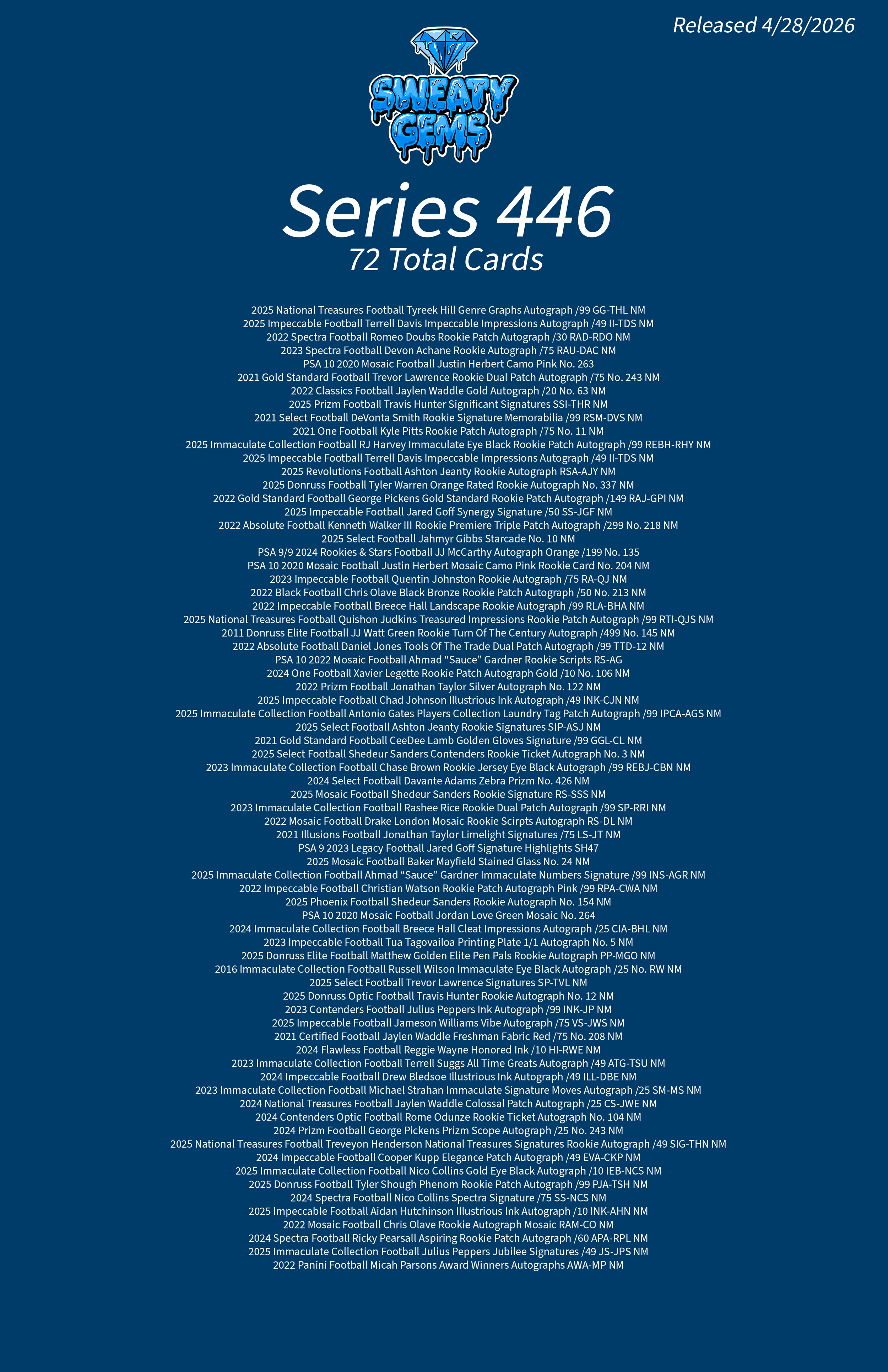 Classic Series 446 Checklist Apr 28 Written By Sweaty Gems LLC . Release date: 04/28/2026. The full product checklist can be found below. Sweaty Gems LLC .