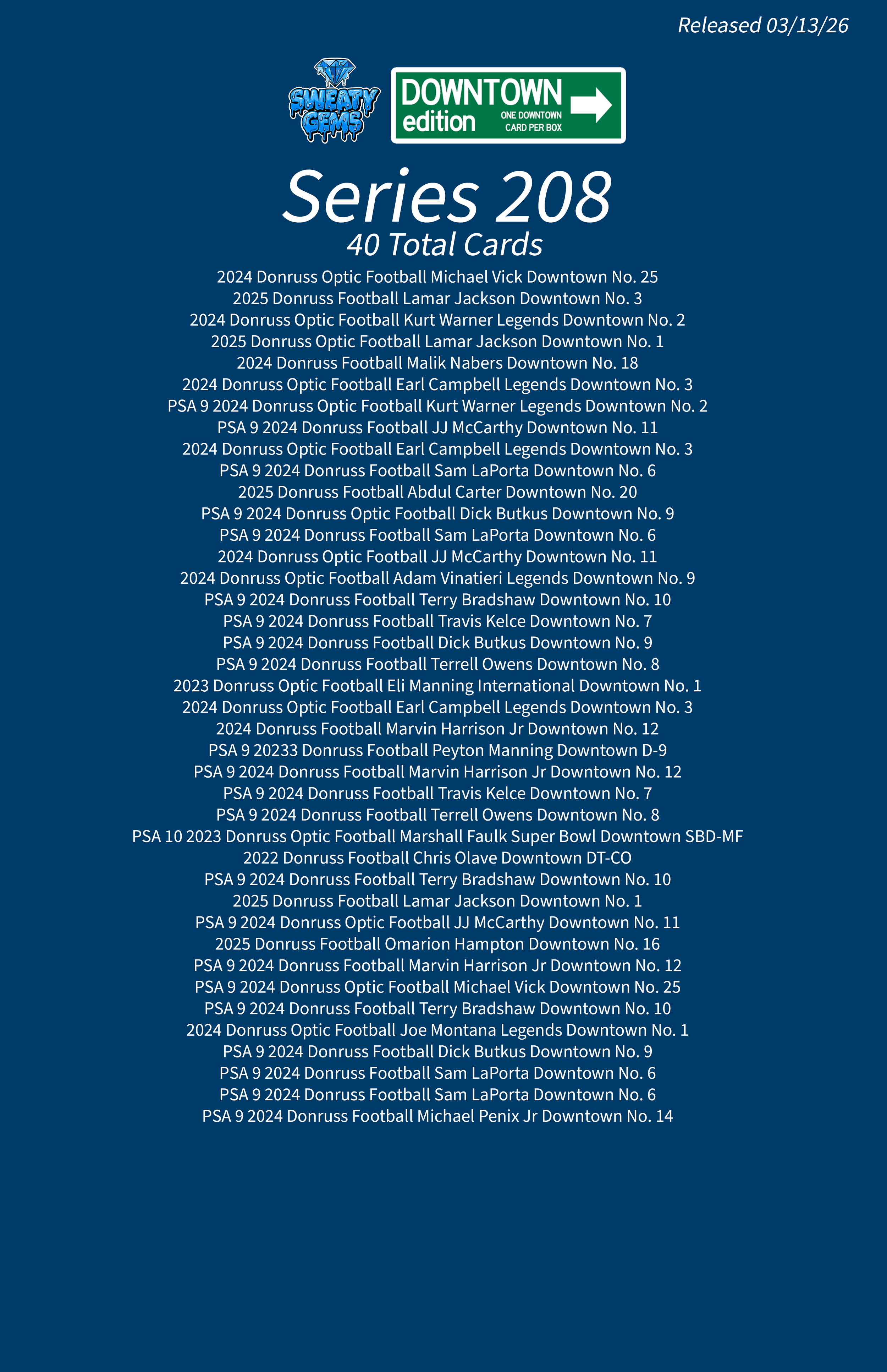 Downtown Edition Series 208 Mar 13 Written By Sweaty Gems LLC . Release date: 03/13/2026. The full product checklist can be found below. Sweaty Gems LLC .