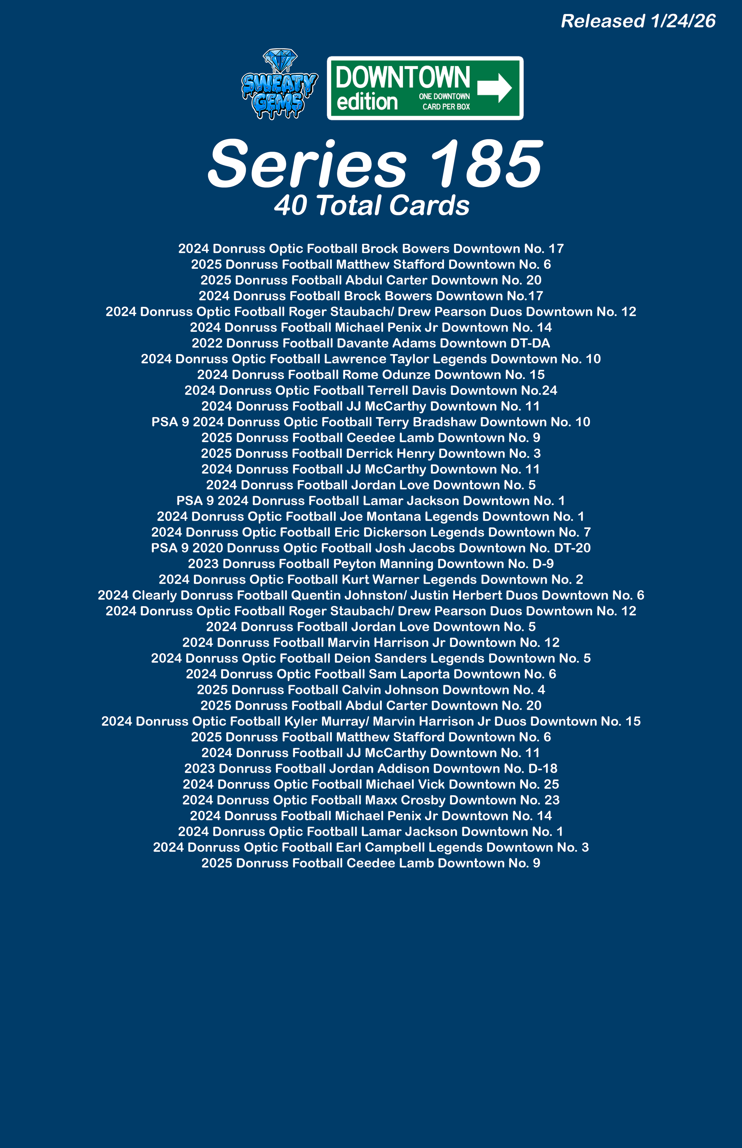 Downtown Edition Series 185 Jan 24 Written By Sweaty Gems LLC . Release date: 01/24/2026. The full product checklist can be found below. Sweaty Gems LLC .