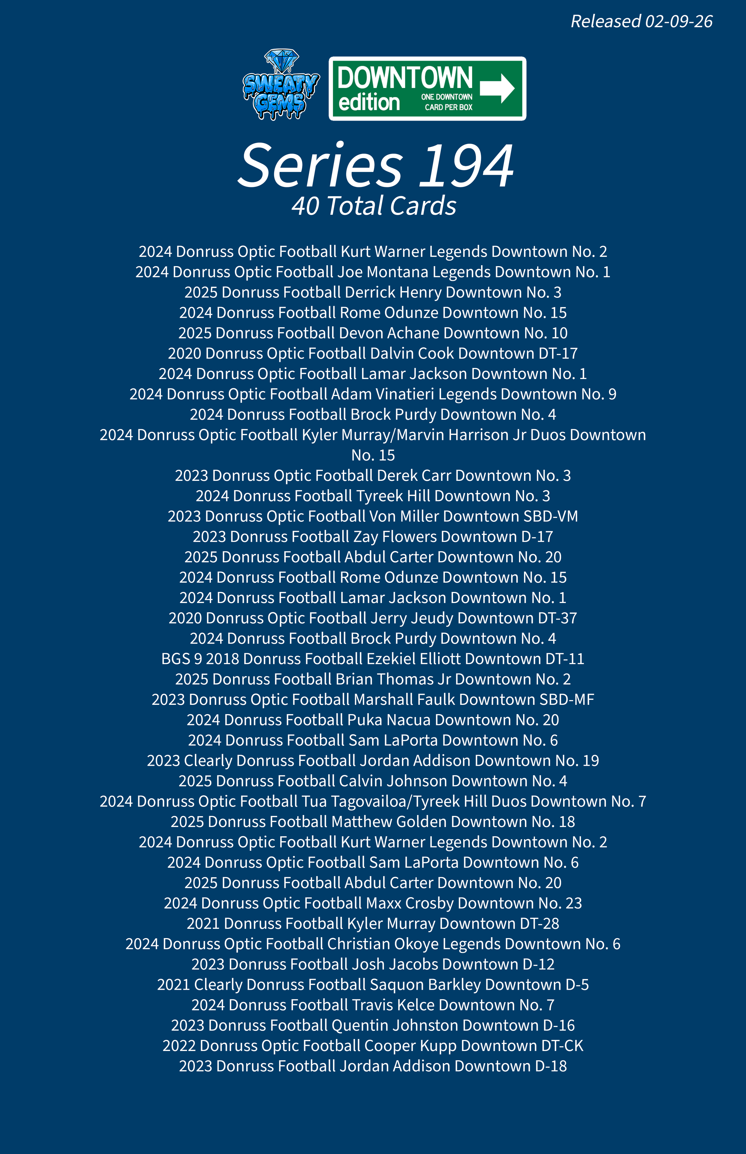 Downtown Edition Series 194 Feb 9 Written By Sweaty Gems LLC . Release date: 02/09/2026. The full product checklist can be found below. Sweaty Gems LLC .