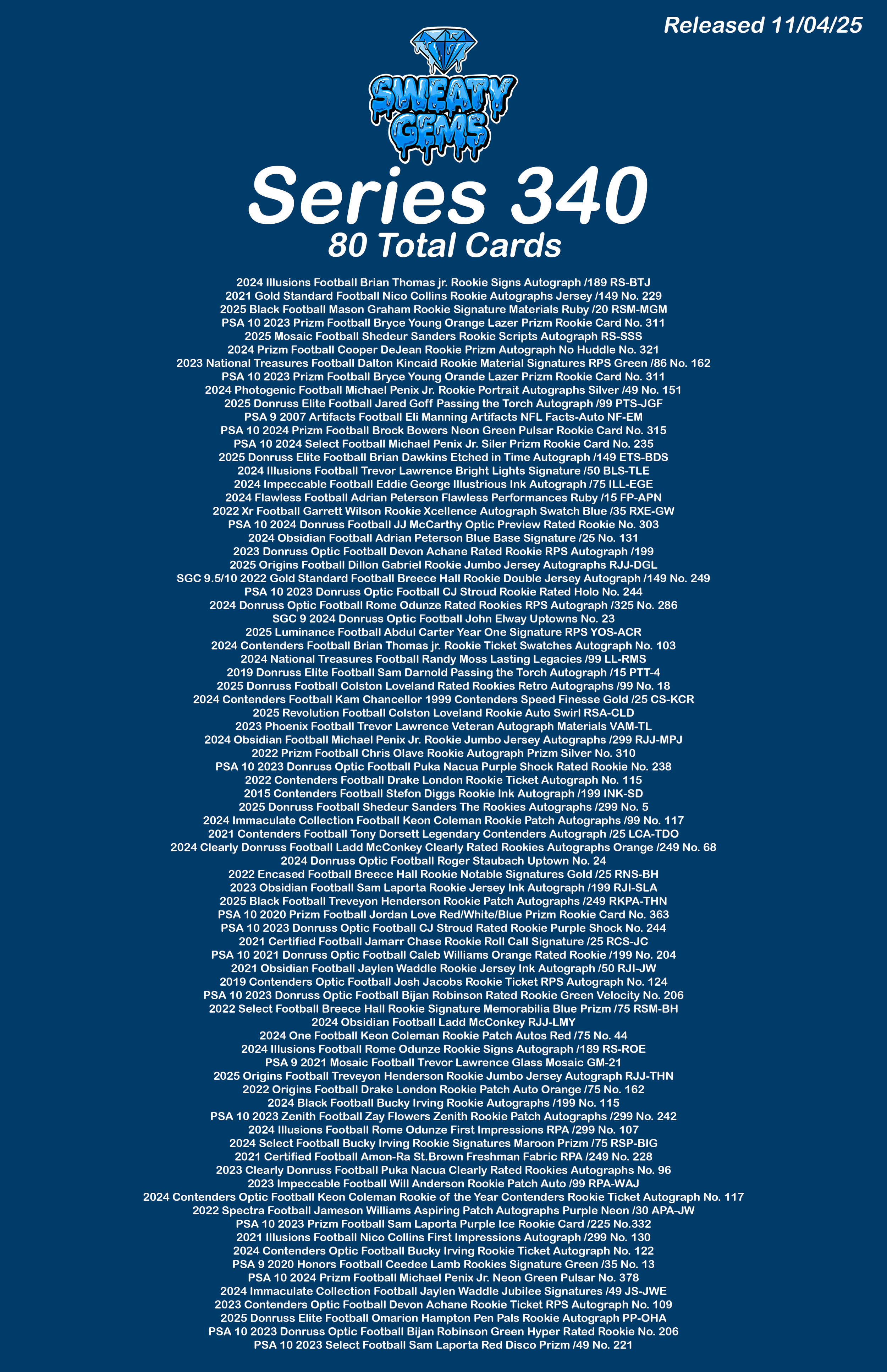 Classic Series 340 Checklist Nov 4 Written By Sweaty Gems LLC . Release date: 11/04/2025. The full product checklist can be found below. Sweaty Gems LLC .
