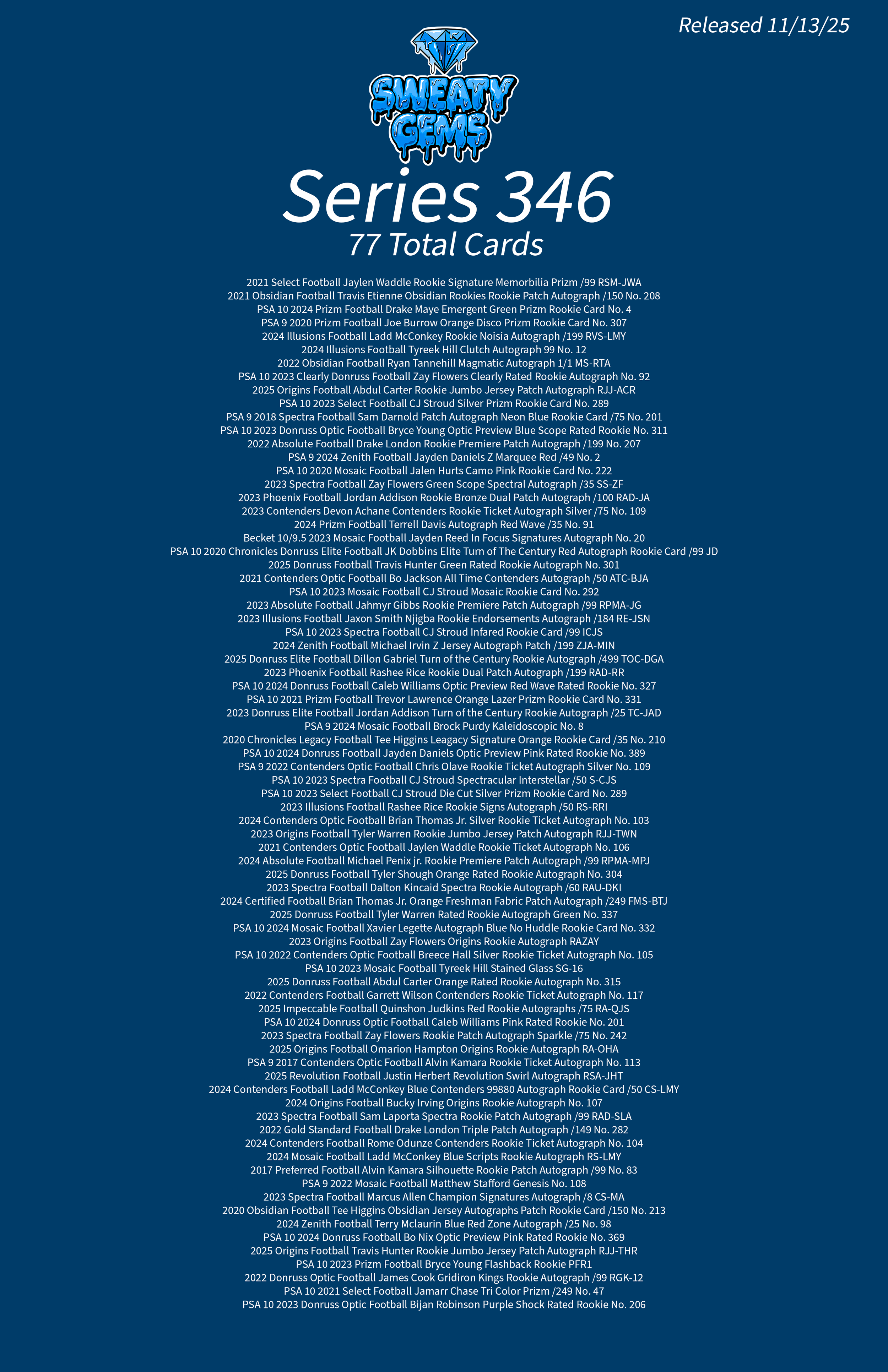 Classic Series 346 Checklist Nov 13 Written By Sweaty Gems LLC . Release date: 11/13/2025. The full product checklist can be found below. Sweaty Gems LLC .
