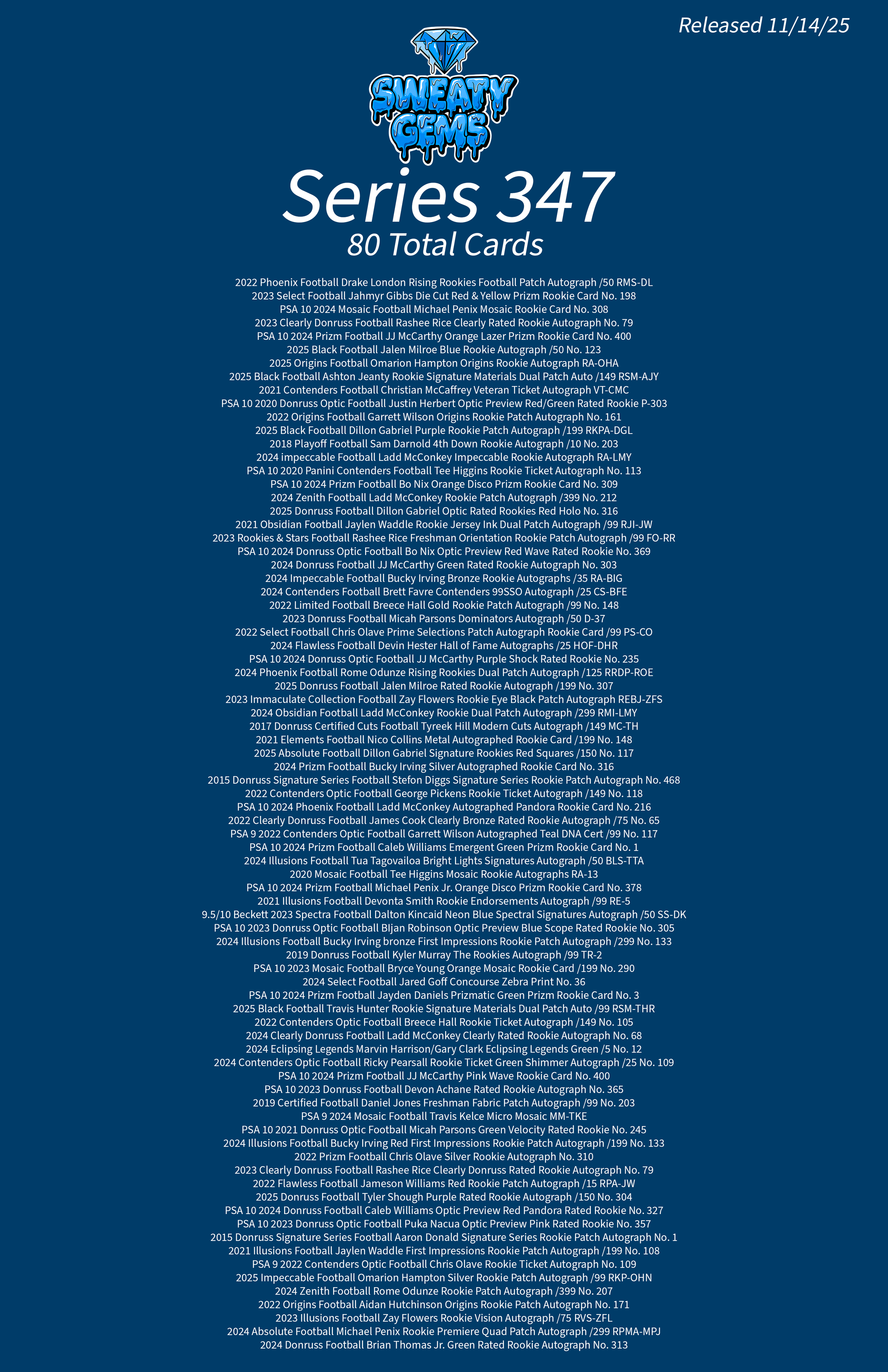 Classic Series 347 Checklist Nov 14 Written By Sweaty Gems LLC . Release date: 11/14/2025. The full product checklist can be found below. Sweaty Gems LLC .