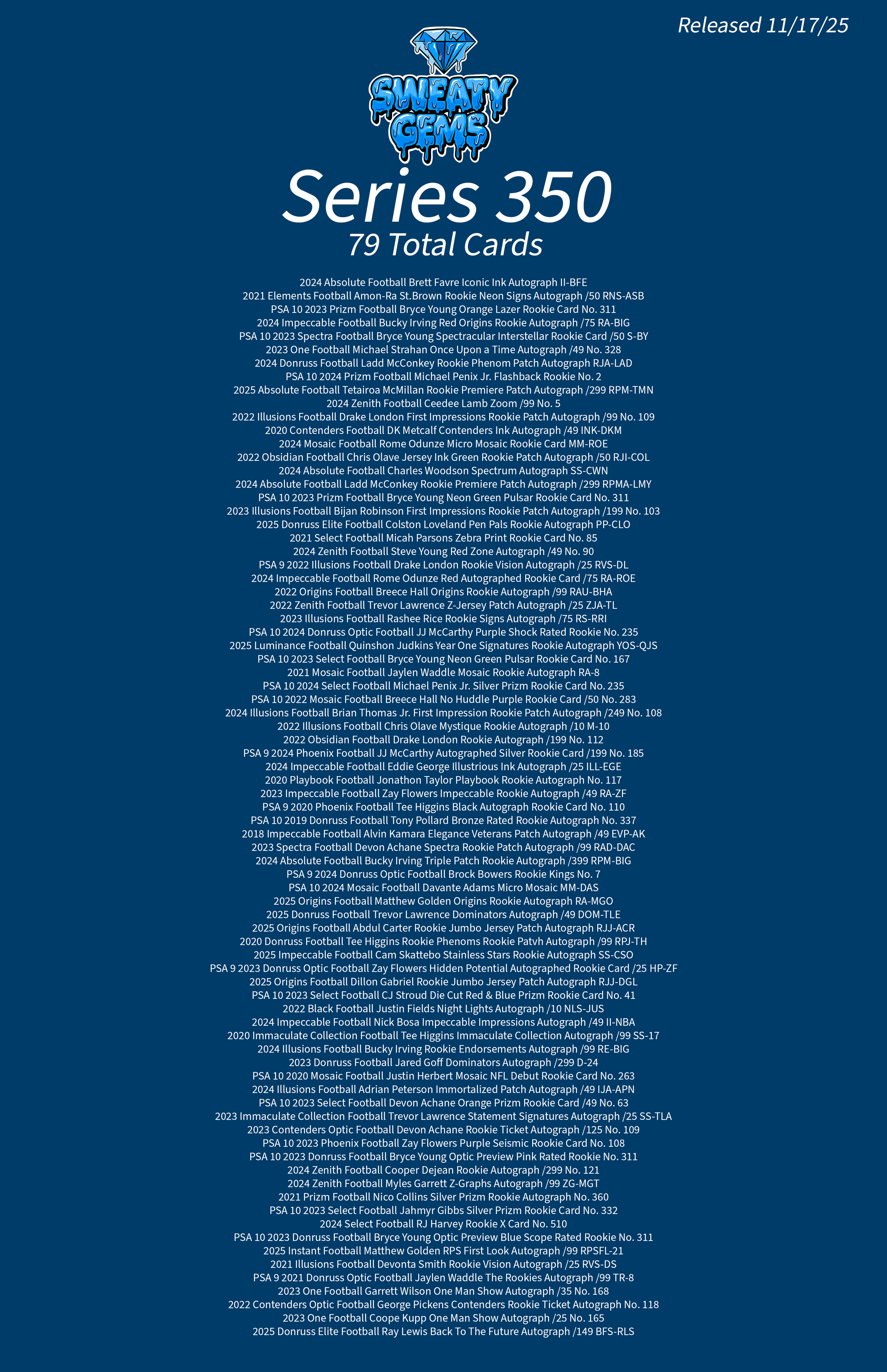 Classic Series 350 Checklist Nov 17 Written By Sweaty Gems LLC . Release date: 11/17/2025. The full product checklist can be found below. Sweaty Gems LLC .