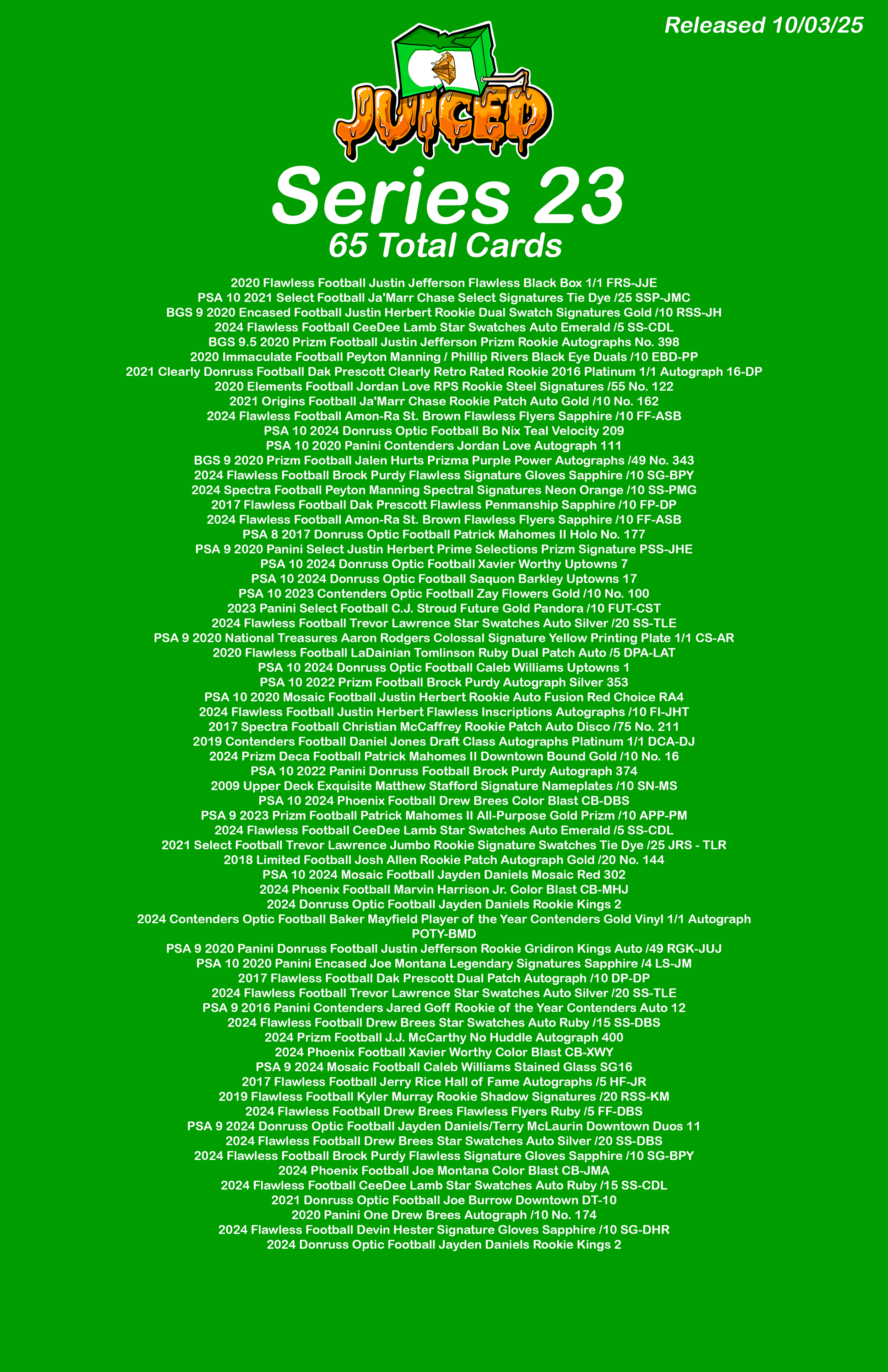 Juiced Series 23 Checklist Oct 3 Written By Sweaty Gems LLC . Release date: 10/03/2025. The full product checklist can be found below. Sweaty Gems LLC .