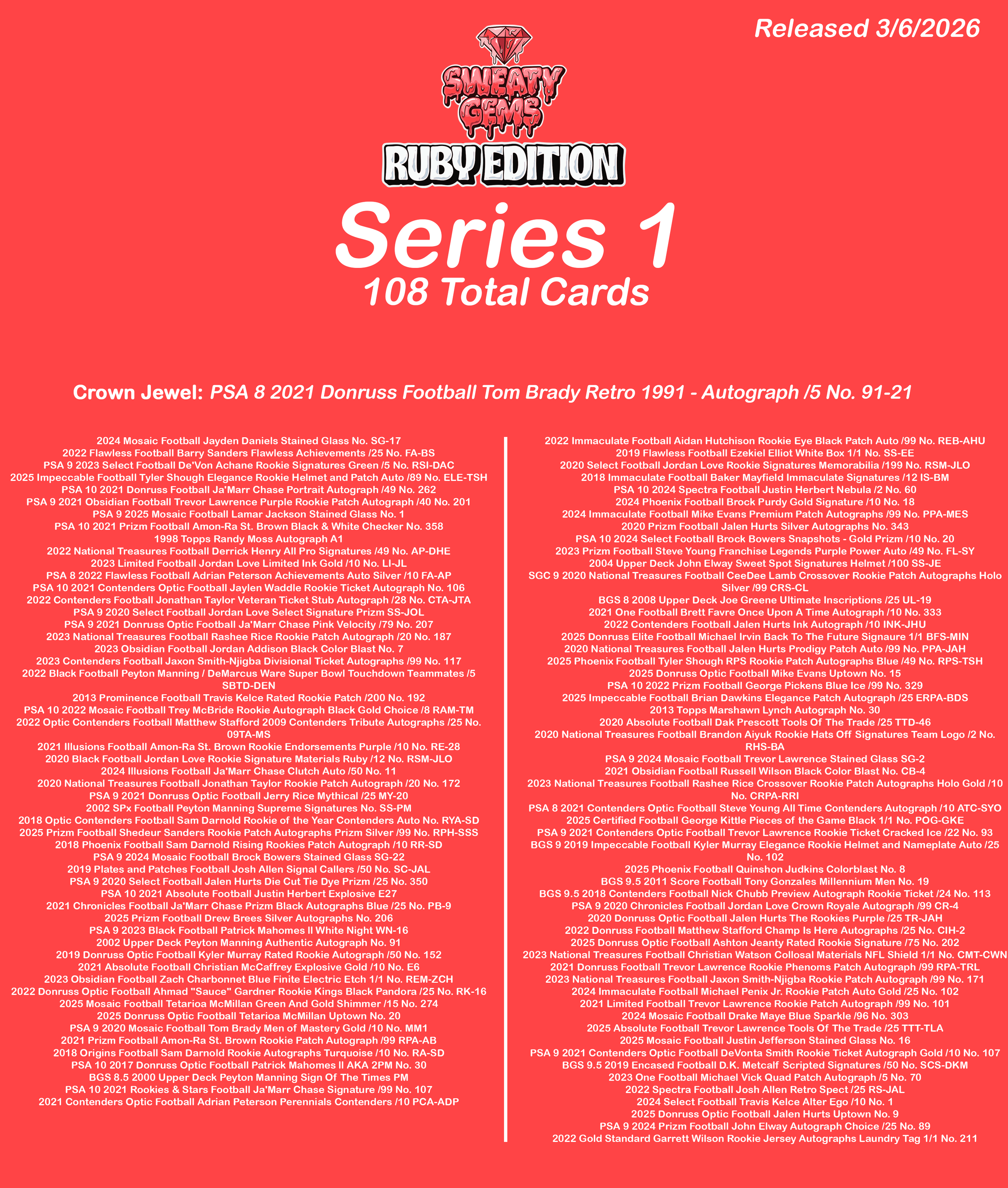 Ruby Edition Series 1 Checklist Mar 3 Written By Sweaty Gems LLC . Release date: 03/06/2026. The full product checklist can be found below. Sweaty Gems LLC .