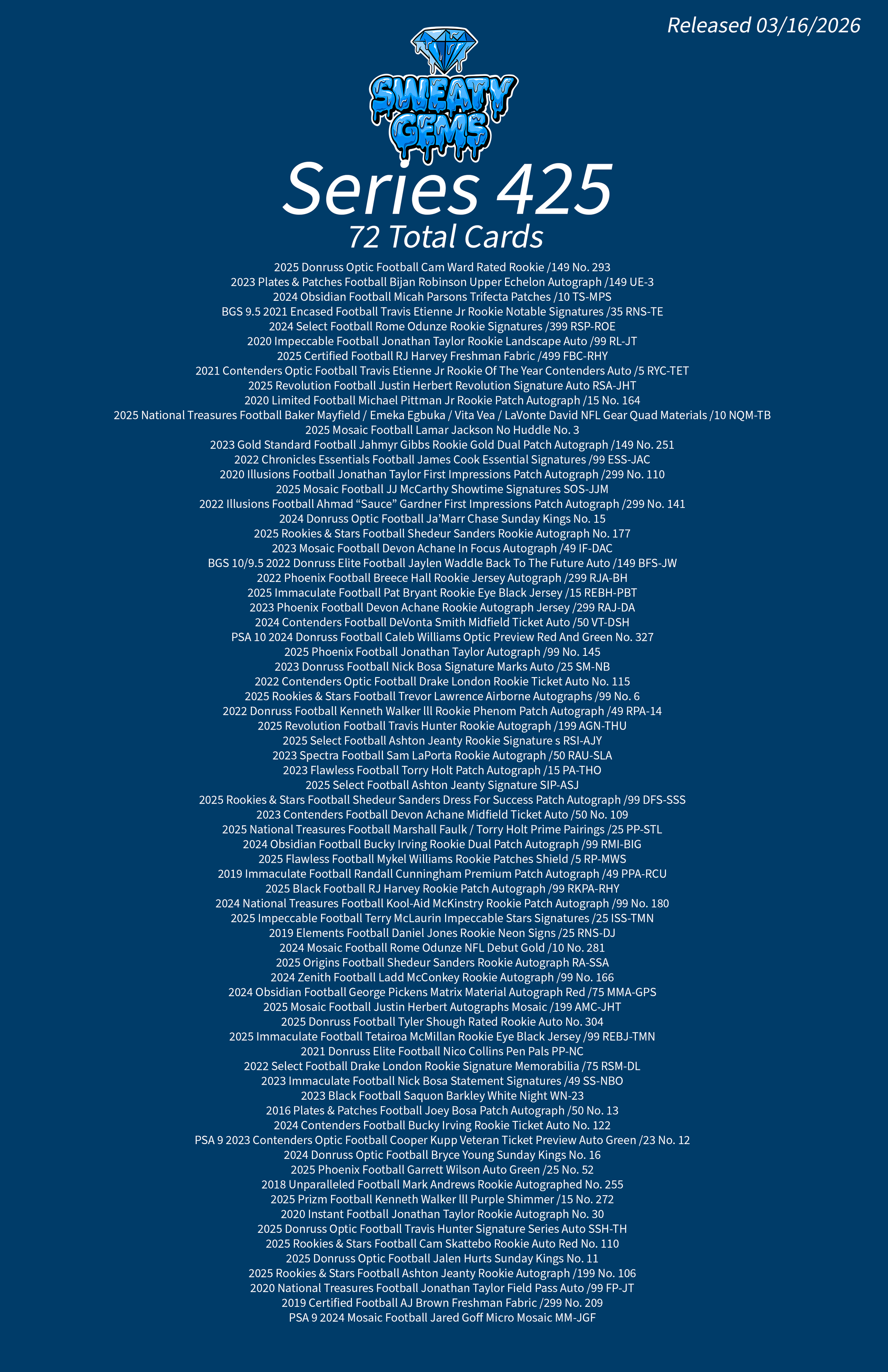 Classic Series 425 Checklist Mar 16 Written By Sweaty Gems LLC . Release date: 03/16/2026. The full product checklist can be found below. Sweaty Gems LLC .