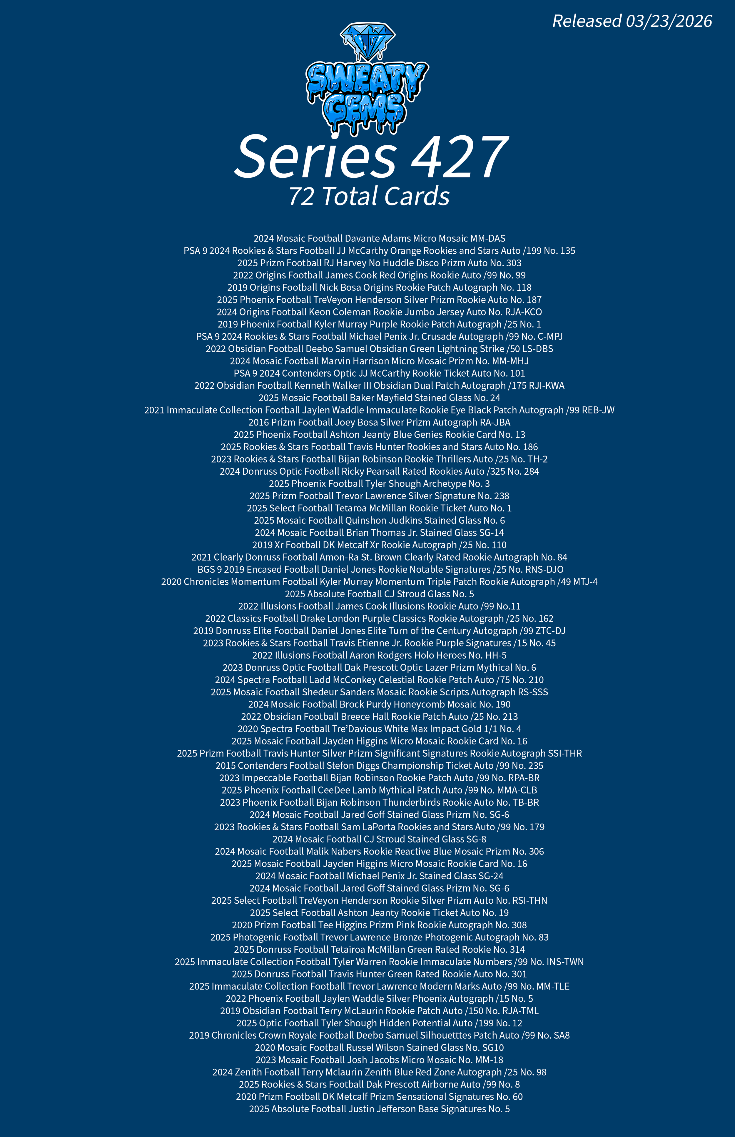 Classic Series 427 Checklist Mar 23 Written By Sweaty Gems LLC . Release date: 03/23/2026. The full product checklist can be found below. Sweaty Gems LLC .